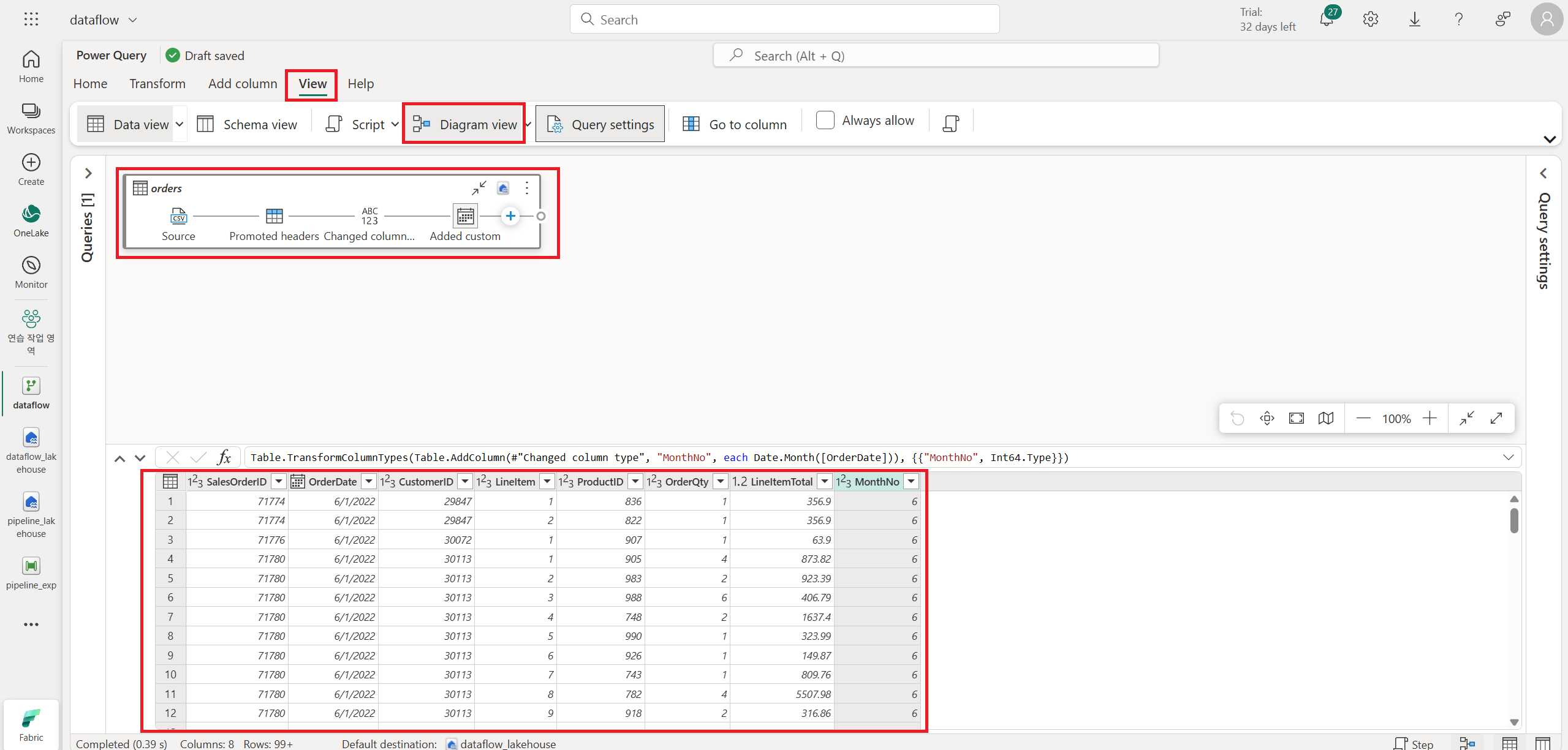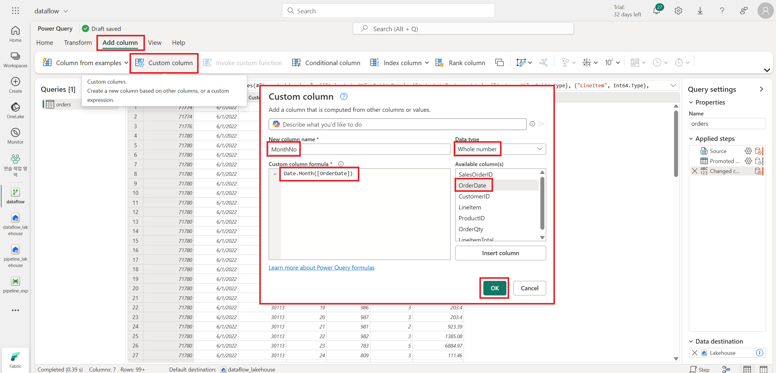 https://raw.githubusercontent.com/MicrosoftLearning/dp-data/main/orders.csv 링크에서 다운받는다.