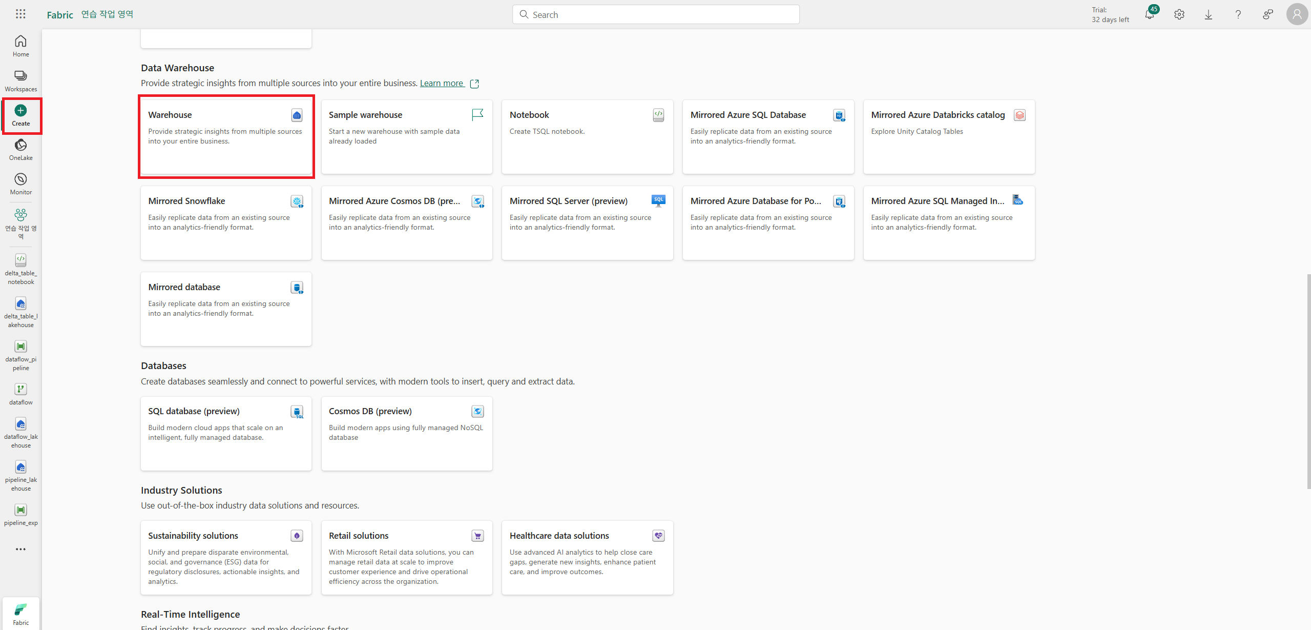 Warehouse를 생성한다.
