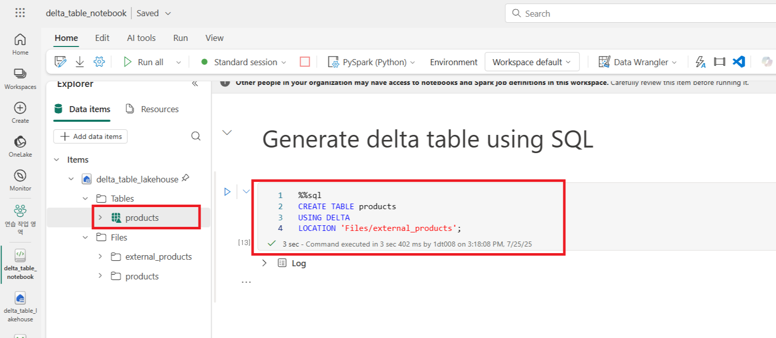 df.write.format("delta").saveAsTable("external_products", path=files_folder_path + "external_products")