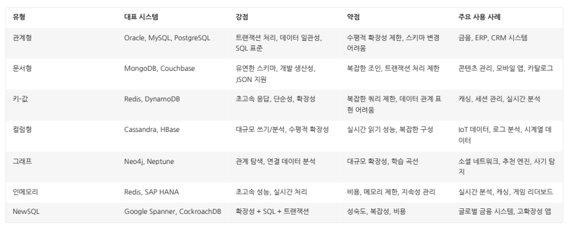 | 4세대 | 관계형 | 1970~1980년대 | 테이블 구조, SQL | Oracle, DB2, SQL Server |