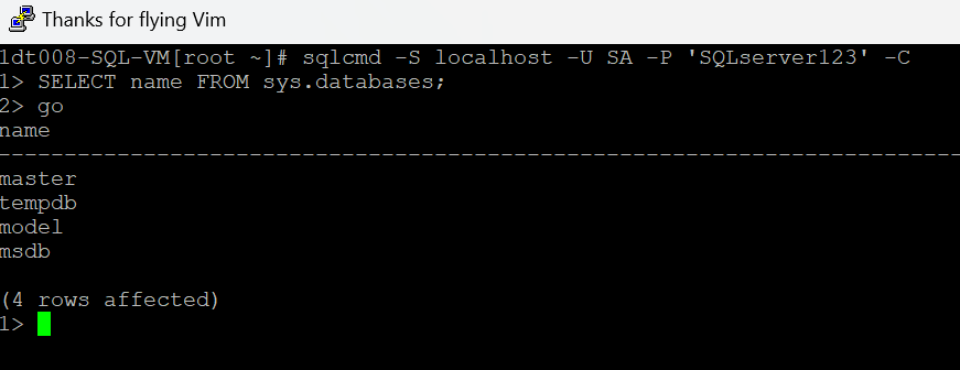 sqlcmd -S localhost -U SA -P '비밀번호' -C