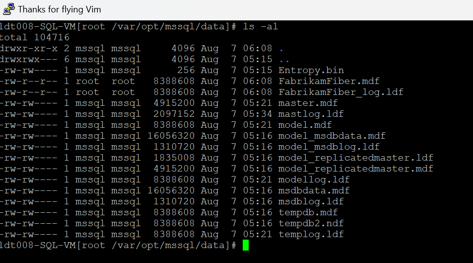 chown mssql:mssql FabrikamFiber*으로 소유권자를 변경해야 한다.